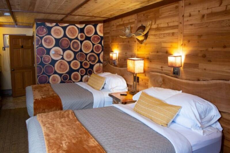 2 queen size beds with a fridge, microwave and coffeemaker.